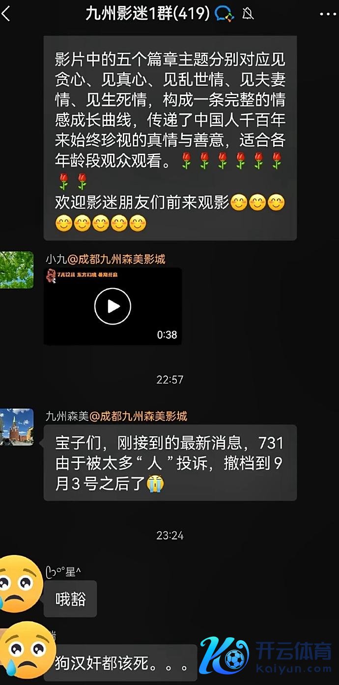 7月26日,某博主爆料:“影院接到见告,《731》因投诉撤档至9月3日后。”虽未获官方说明,但电影于今未开预售,专资办系统也查无此片。