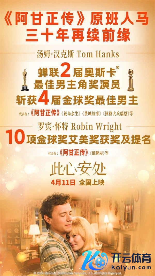 《阿甘正传》原班东谈主马时隔三十年重聚力作!电影《此快慰处》厚爱官宣定档4月11日世界上映,并发布定档海报。海报画面中汤姆·汉克斯与罗宾·怀特并列而立,叫醒了多量影迷的情感。