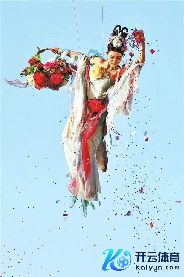 演员在洛阳市洛邑古城景区献技天女散花。 记者 王铮 摄