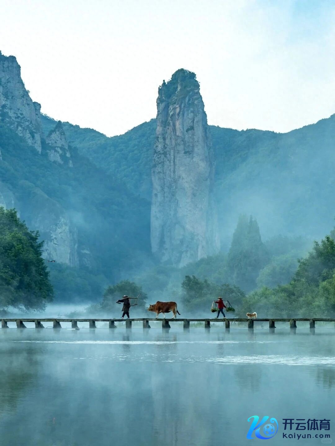 缙云仙都的鼎湖峰,是这里的记号。170多米高的石柱从幽谷拔起,像一根宏大的石笋直刺天穹,四壁近乎垂直,周围溪流环绕,潸潸缭绕时真像瑶池。朱潭山的晨雾中,老农牵牛从石桥上缓缓走过,边远鼎湖峰若存若一火——这个画面,是巨额影相醉心者心中的“白蟾光”。