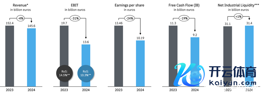 就在6天前,飞奔公布的2024年的财报自大,2024年,飞奔汽车集团的营收为1456亿欧元(约合东说念主民币1.11万亿元),同比下跌4.5%。息税前利润(EBIT)为136亿欧元(约合东说念主民币1032亿元),同比下跌31%,净利润为104亿欧元(约合东说念主民币792亿元),同比下跌28%。