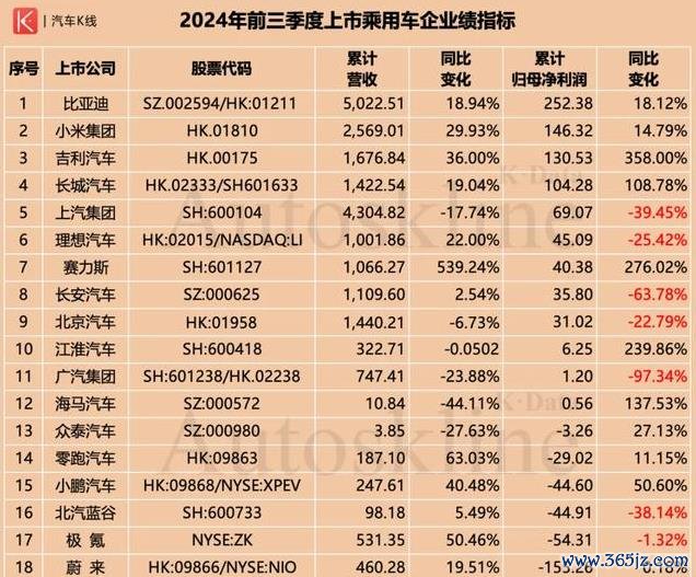 骨子上,从长城汽车三季报来看,前三季度销量同比下跌1.18%,但营收增长19.04%,达到1422.54亿元。归母净利润更是大涨108.78%至104.28亿元,仅次于比亚迪、小米集团和祯祥汽车。