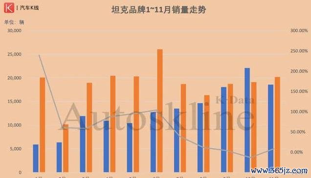 但方法的背后,是坦克品牌销量增长遭遇瓶颈。“金九银十”,先是同比增长3.8%,之后下滑13.49%,11月同比增幅也不外8.68%。近3个月,比较此前两位以至三位数的增长,大相径庭。