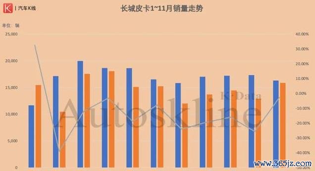 哈弗如斯,长城汽车得以藏身立命的另一品牌——长城皮卡,销量鸠合10个月同比下跌,11个月累计销售16.09万辆,同比下跌13.66%,险些提前锁定近五年最差成绩。