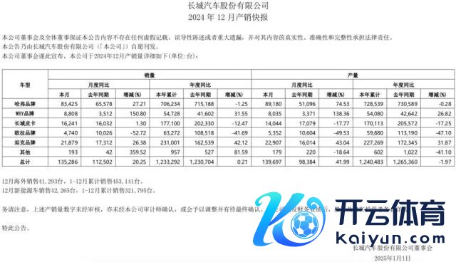 关于功绩的大幅增长,官方示意主如果由于公司刚毅不移地鼓舞高质料发展战术。外洋商场的销售发扬强盛,为公司带来了可不雅的收入增长。同期,在国内商场进一步优化居品结构,升迁了居品竞争力和商场份额。与此同期,长城汽车还指出非规画性损益的增多主要归因于收到的政府赞成同比增多,这一变化对公司合座财务景况产生了积极影响。