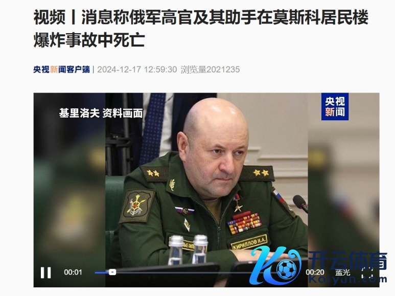 据参考音书征引本日俄罗斯电视台网站12月17日报说念,两名须眉在俄罗斯王人门被一个疑似通俗爆炸安装炸死,其中包括俄武装力量发射、化学和生物提神戎行司令伊戈尔·基里洛夫中将。