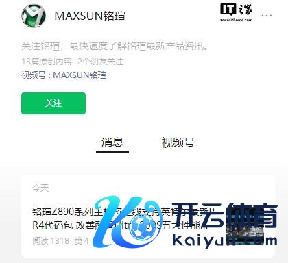 铭瑄科技本日发文称,他们昨天参预了英特尔中国举行的ARL-S 性能共享及体验会,并晓示其 Z890 系列主板将全线因循英特尔推出的最新 PR4 版块代码包。