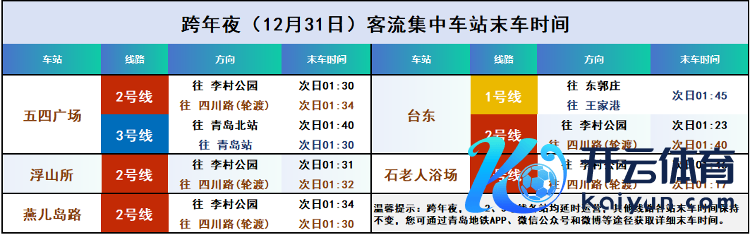 倒计时、烟花秀、灯光秀……本年的跨大除夜,青岛将有多场精彩步履等市民搭客参与。为保险好跨大除夜群众出行,记者从青岛地铁集团获悉,跨大除夜(12月31日),1、2、3号线各站均延时运营。