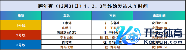 跨大除夜1、2、3号线各站末车时候公布,其他显露各站末车时候保握不变。夜间搭乘地铁的乘客一定要精明末车时候哦!