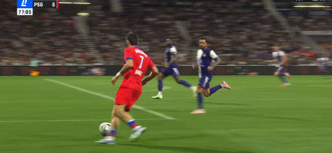 开场只是6分钟,巴黎右路迫切,内维斯右路下底传中。随后,他我方也往禁区里跑。禁区里一派混战,队友射门踢歪了,皮球来到内维斯眼前。背对球门,内维斯趁势倒勾射门,门将反馈不足,球进了!