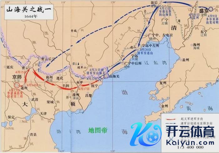 三月十六,吴三桂抵山海关。三月十九,李自成的大顺军进入北京,崇祯投环景山(煤山)。三月二十,吴三桂抵达河北丰满,闻讯引兵退保山海关。