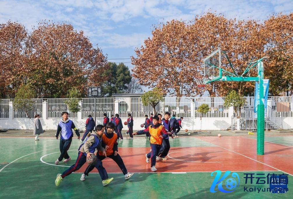 12月16日,轧村中学的学生们在阳光大课间行径中进行篮球比赛。