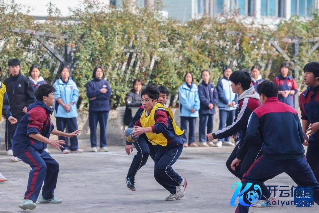 12月16日,轧村中学的学生们在阳光大课间行径中插足足球游戏。