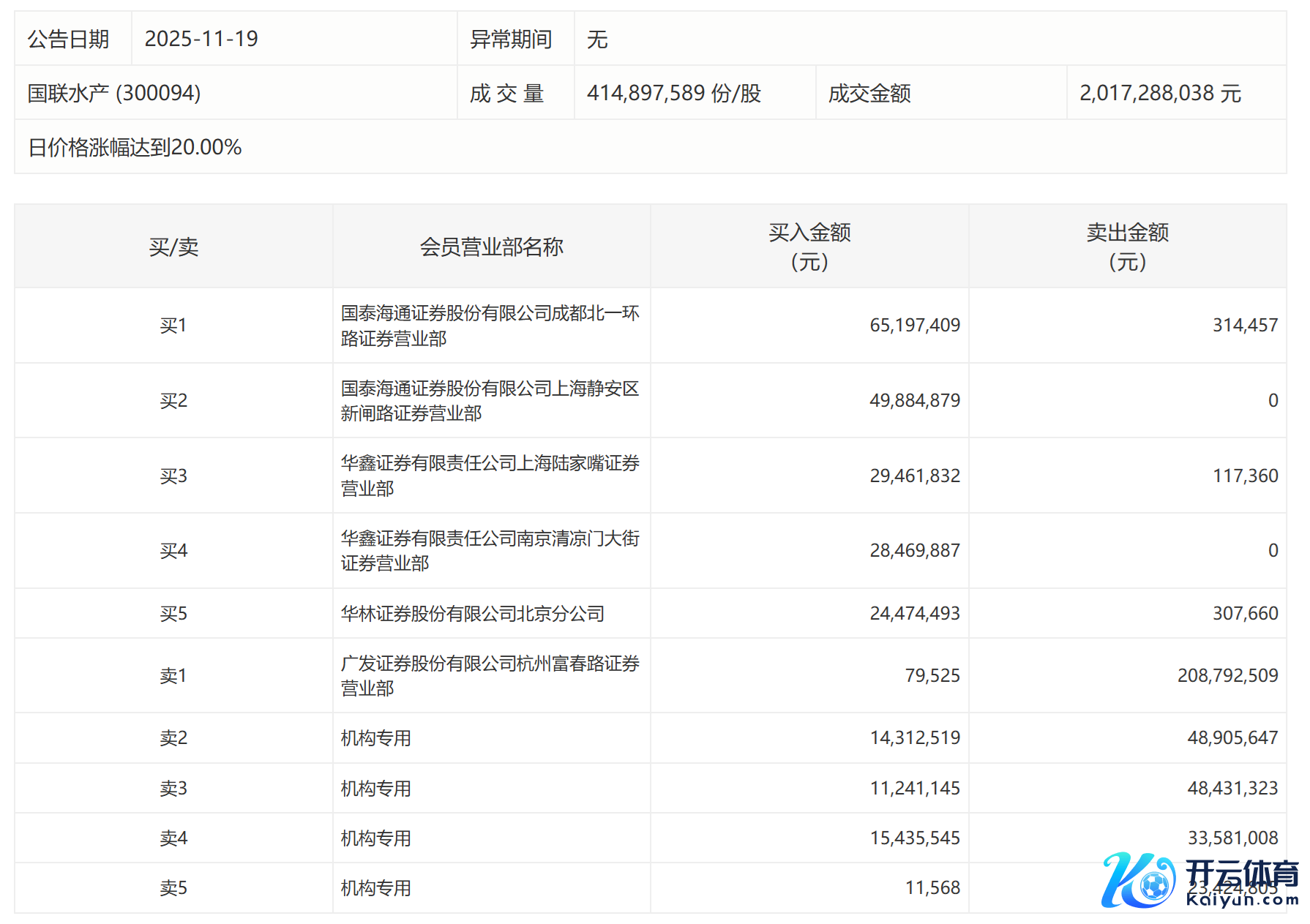 国联水产当天20%涨停,4家机构专用席位净卖出1.13亿元国联水产当天20%涨停,4家机构专用席位净卖出1.13亿元