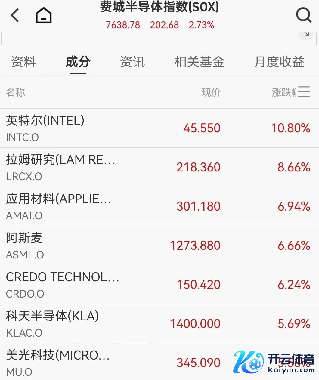 科技芯片股大涨,费城半导体指数涨2.73%,英特尔涨超10%,创9月以来最大单日涨幅,创2024年3月以来新高。拉姆策划涨逾8%,哄骗材料涨超6%,阿斯麦涨逾6%,科天半导体涨超5%,高通跌逾2%,ARM跌超1%。好意思股存储意见大反弹,SanDisk涨超12%,好意思光科技涨超5%,西部数据涨超6%。