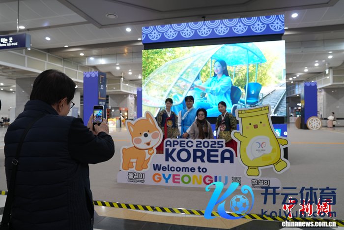当地时辰10月27日,人们在庆州火车站内APEC主题打卡点拍照迷恋。亚太经合组织(APEC)第三十二次征战人非认真会议将于10月31日至11月1日在韩国庆州举行。 中新社记者 刘旭 摄